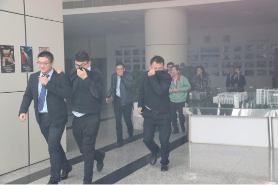 本次演練由公司總經(jīng)理應(yīng)剛擔(dān)任總指揮。演練共設(shè)置了警械疏散組、通訊聯(lián)絡(luò)組、搶修搶險組、物資供應(yīng)組、醫(yī)療救援組五個組。下午2點,各小組準(zhǔn)備完畢后,演練正式開始。根據(jù)演練預(yù)案,公司四樓倉庫發(fā)生了火災(zāi),剎那間煙霧彌漫?;馂?zāi)報警系統(tǒng)的警報聲驟然響起,大樓內(nèi)全體員工聽聞報警聲后迅速切斷電源,在各部門負責(zé)人的組織下,沿著大樓樓梯向樓下跑去,迅速逃離火場。整個過程井然有序,五分鐘的時間,大樓內(nèi)工作人員全部逃離火災(zāi)現(xiàn)場,接著參加在公司門口空地舉行的滅火演練。