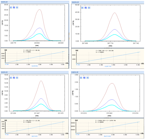 在 ICP-AES正常運行后,將樣品溶液通過進樣系統(tǒng)引入到電感耦合等離子體中,分析波長測定各元素的光譜強度。
