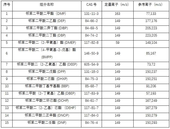 參照現(xiàn)行相關(guān)標(biāo)準(zhǔn):GB 5009.271—2016《食品安全國(guó)家標(biāo)準(zhǔn) 食品中鄰苯二甲酸酯的測(cè)定》、GB 9685-2016《食品 安全國(guó)家標(biāo)準(zhǔn) 食品接觸材料及制品用添加劑使用標(biāo)準(zhǔn)》、LS/T 6131-2018《糧油檢驗(yàn) 植物油中鄰苯二甲酸酯類化合物的測(cè)定》,本方法對(duì)食用油中的15種鄰苯二甲酸酯類物質(zhì)進(jìn)行檢測(cè),樣品經(jīng)有機(jī)溶劑提取、凈化、定容后,用GC-MS 6800氣相色譜質(zhì)譜聯(lián)用儀進(jìn)行準(zhǔn)確的定性和定量測(cè)定。