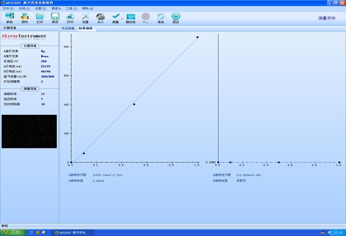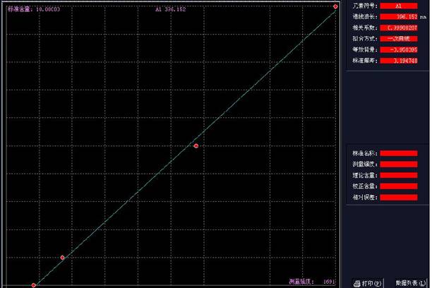 (A道線性方程:Y=875.144*X-17.003);(A道線性值:0.99916)見(jiàn)圖1