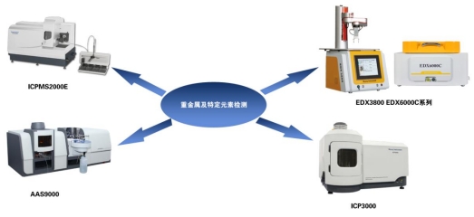 針對快遞包裝重金屬及特定元素(除氟元素外)的檢測,可通過EDX光譜儀進行前期的快速無損篩選分析,后期通過AAS、ICP-OES、ICP-MS進行精確定量分析。