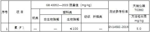 氟(F-)是一種有毒的鹵素元素。對于快遞包裝而言,氟(F-)含量的測定可用于評估塑料可降解包裝袋的環(huán)保性能和使用壽命,對于保護環(huán)境和人類健康意義重大。