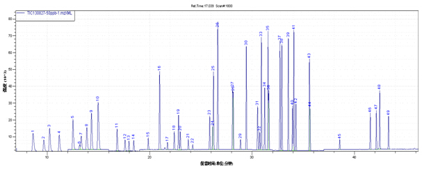 圖4. 54種揮發(fā)性有機(jī)物的選擇離子監(jiān)測模式圖(SIM)