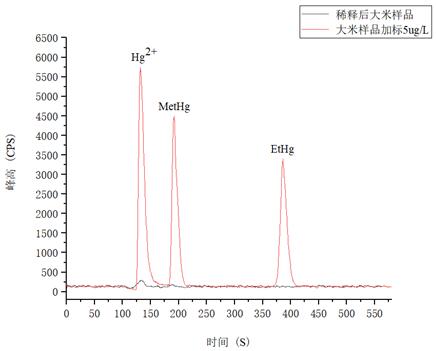 本文參考國家衛(wèi)生和計劃生育委員會發(fā)布的《GB 5009.17-2014 食品中甲基汞的測定》,通過HPLC-ICPMS聯(lián)用,采用C18柱,利用等度洗脫的方式對稀酸浸提后的大米進行了分析,同時對樣品采取了加標處理,且加標回收率良好。測試結(jié)果表明,該方法能夠快速準確地進行大米樣品中汞形態(tài)的分析。